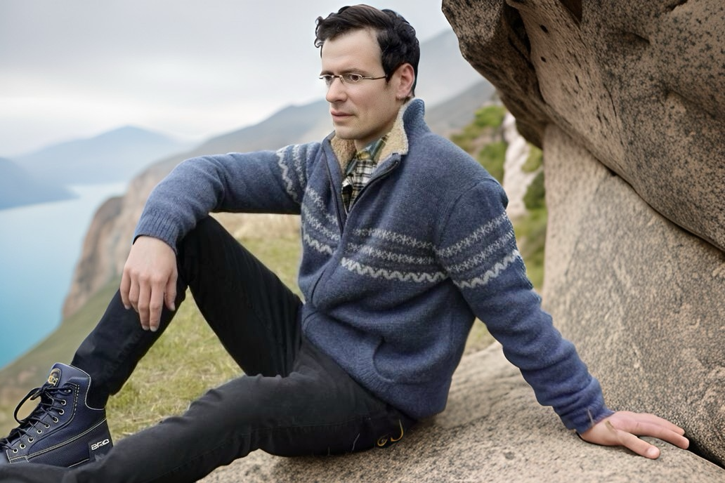 Fleece lined sweater with a straight Men’s cut, full zip, front pockets. This sweater is great for guys or gals, with the soft fleece lining folks are wearing this as a jacket, light coat or super warm sweater under a coat.